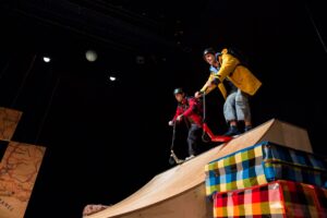 Arthur et Ibrahim sont les meilleurs amis du monde. Enfin non : un jour, finies les courses en trottinette et les blagues, Ibrahim rejette Arthur. Sous l’influence d’un père déraciné, craignant de voir son fils ne plus considérer sa propre histoire familiale, l’enfant d’origine algérienne décide de ne plus fréquenter son « ami français ». Arthur, déstabilisé, refuse cette situation. Il imagine alors un plan farfelu : devenir Arabe pour rétablir leur amitié. Amine Adjina, auteur et metteur en scène, signe une fable d’une très belle justesse. À travers une relation menacée, il aborde des questions profondes de préjugés, d’identité… et d’amitié. Les deux enfants nous entraînent dans un univers où la volonté de comprendre l’autre dépasse les barrières sociales. Ce désir de s’intégrer invite à réfléchir sur les frontières visibles et invisibles entre des cultures. Avec ses scènes pleines d’humour et de saveur, Arthur et Ibrahim raconte avec générosité, et un petit grain de folie, le plus important : être soi-même et s’accepter sans condition.