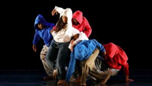 Witch Hunting explore la volonté d’empire de l’être humain et sa capacité d’abnégation. Sur le plateau nu, six danseuses et danseurs de styles de danse différents – krump, hip-hop et danses africaines urbaines et traditionnelles – utilisent la virtuosité de leur danse pour délimiter leur zone d’influence et conditionner la gestuelle des autres. Les individualités trouvent des points de vocabulaire communs et convergent physiquement, consentant à s’allier contre ceux qui s’opposent au consensus élaboré. Dans des conditions où l’un ne peut gagner qu’en écartant les autres, la dynamique du bouc émissaire se joue cycliquement au profit et au détriment de chacun. Les particularités des individus se soumettent à l’emprise de la masse réunie et s’effacent pour tendre vers la conformité, dont la continuité est sans cesse remise en question par la dissidence.