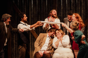 La scénographie entre la ferme et l’extérieur nous immerge dans les quatre saisons de la vie paysanne : traite des vaches, récoltes, travail de la paille et fête du village. En interrogeant la gestion des terres et des ressources, le prix du blé, les effets du climat et de l’industrialisation, La Terre résonne avec acuité les réalités agricoles d’aujourd’hui. Anne Barbot redonne une modernité frappante à cette œuvre et nous livre une réflexion poignante sur les enjeux agricoles contemporains, le déracinement et la quête de sens dans un monde en mutation.
