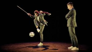 Convoquer le ballon de foot sur scène est, pour Fouad Boussouf, l’occasion de plonger dans ses souvenirs d’enfance et retrouver la percussion du cuir sur le bitume. Comme le hip-hop, le foot freestyle est emblématique des cultures urbaines.